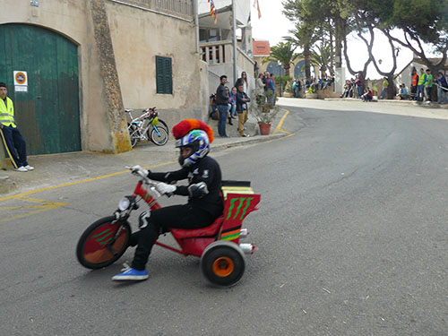 Els vehicles baixaren per una costa de 420 metres i dins cada vehicle hi podien anar, des d’una persona sola fins a quatre. Entre els participants hi havia gent del municipi de Santanyí i d’altres procedent dels distints pobles de l’Illa.
