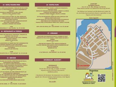 Dos dels indrets de més bellesa natural i tradició pesquera, Cala Figuera i Cala Santanyí, ofereixen durant aquests dos caps de setmana el millor de la nostra cuina. Enguany hi participen 17 establiments i, entre tots, s’ha intentat elaborar una carta molt variada per tal de satisfer a tots paladars. Els clients podran degustar des de plats més tradicionals a una cuina més moderna i avantguardista. Destaquen els llagostins amb ensalada de temporada i vinagreta de taronges, la broqueta de pollastre amb gambes, el secret de porc ibèric amb ceba caramel·litzada, els raviolis de verdura amb pesto rosso, el conill en salsa de mostassa o el pollastre desossat amb fruites i llagostins. El plat va acompanyat de beguda (aigua, vi o cervesa) i postres, i el preu oscil·la entre els 5,50 euros i els 28 euros.