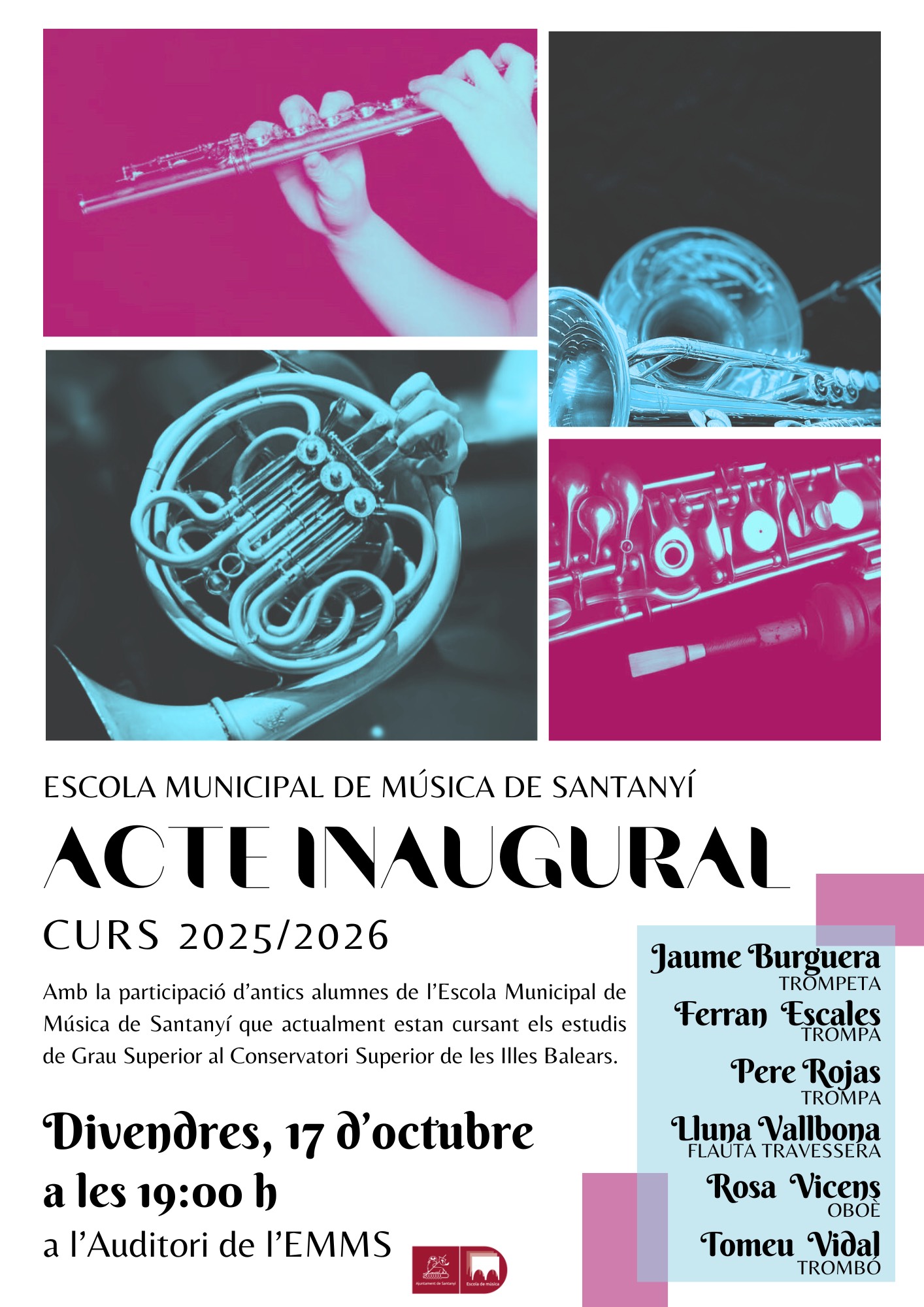 Acte inaugural del curs 2025/2026 de l’Escola Municipal de Música de Santanyí amb la participació d’antics alumnes de l’EMMS que actualment estan cursant els estudis de grau superior al Conservatori Superior de les Illes Balears.