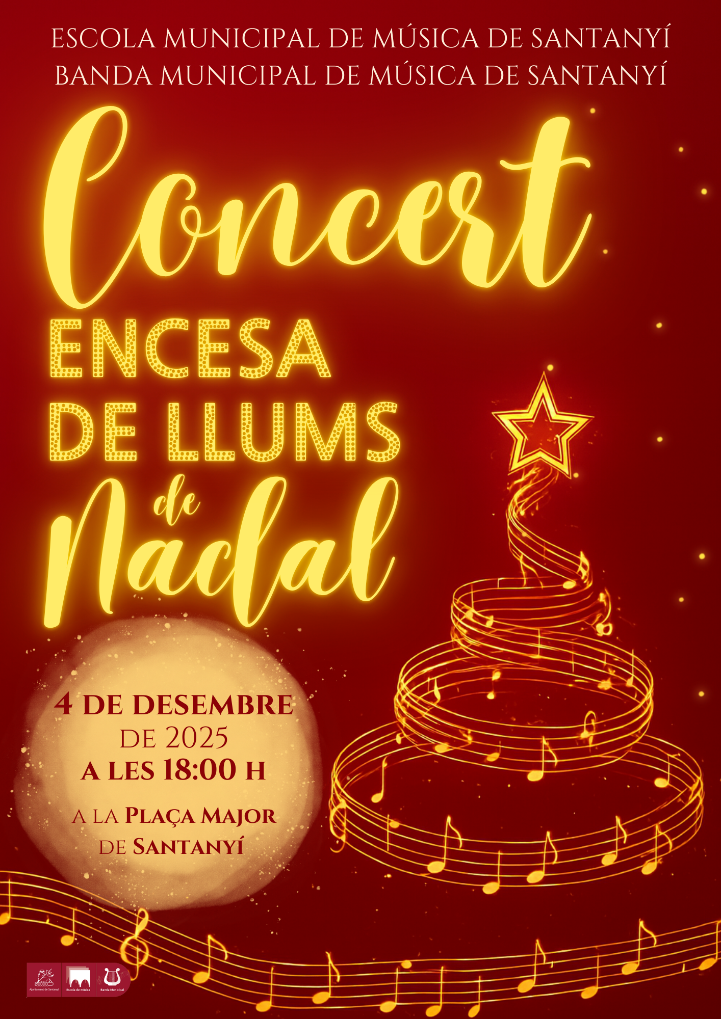 Concert de Nadal de la Banda Municipal de Música de Santanyí i de l’Escola Municipal de Música de Santanyí.Ho organitza: Regidoria d’Escoles de Música i la Regidoria de Bandes de Música de l’Ajuntament de Santanyí.