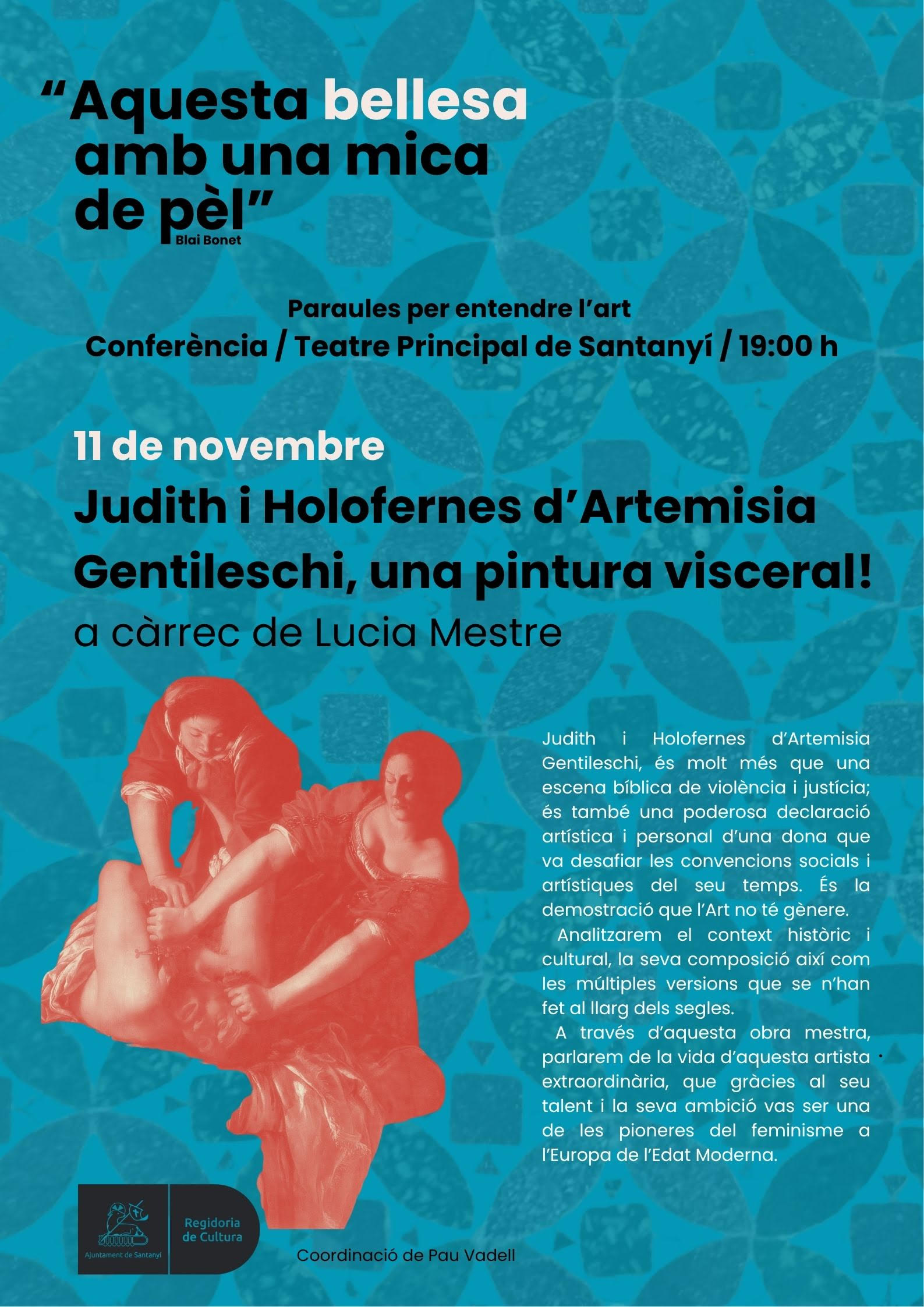 A través d’aquesta obra mestra, parlarem de la vida d’aquesta artista extraordinària, que gràcies al seu talent i la seva ambició vas ser una de les pioneres del feminisme a l’Europa de l’Edat Moderna.