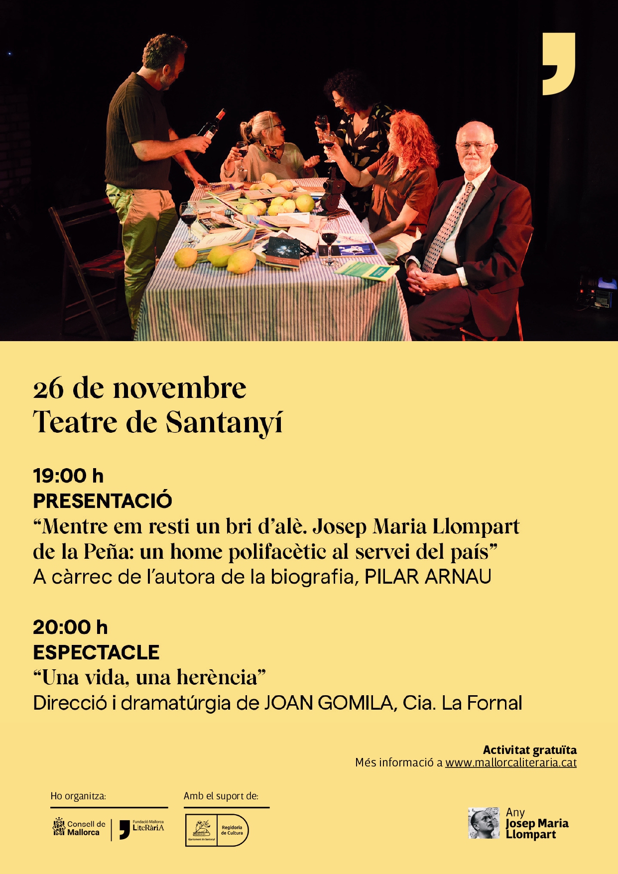 Tot seguit l’obra de teatre “Una vida, una herència” a partir de la vida i obra de Josep Maria Llompart.