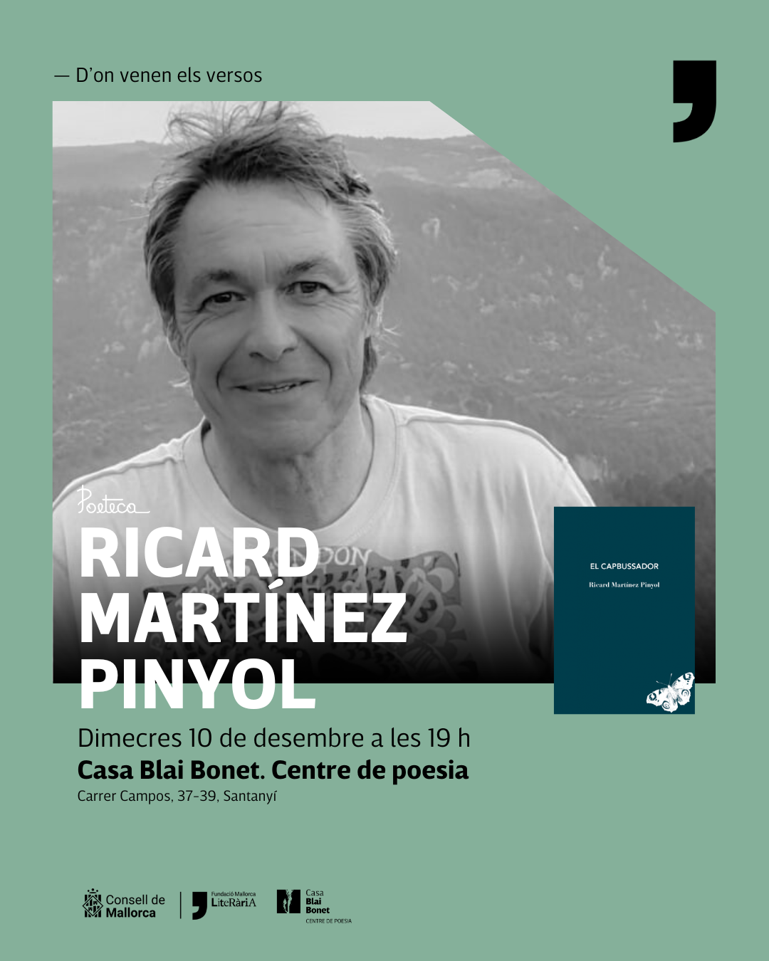 Nova edició del cicle ‘D’on venen els versos’ a la Casa Blai Bonet. El mes de desembre rebem el poeta Ricard Martínez Pinyol, que ha publicat recentment el poemari El capbussador (LaBreu Edicions, 2025).