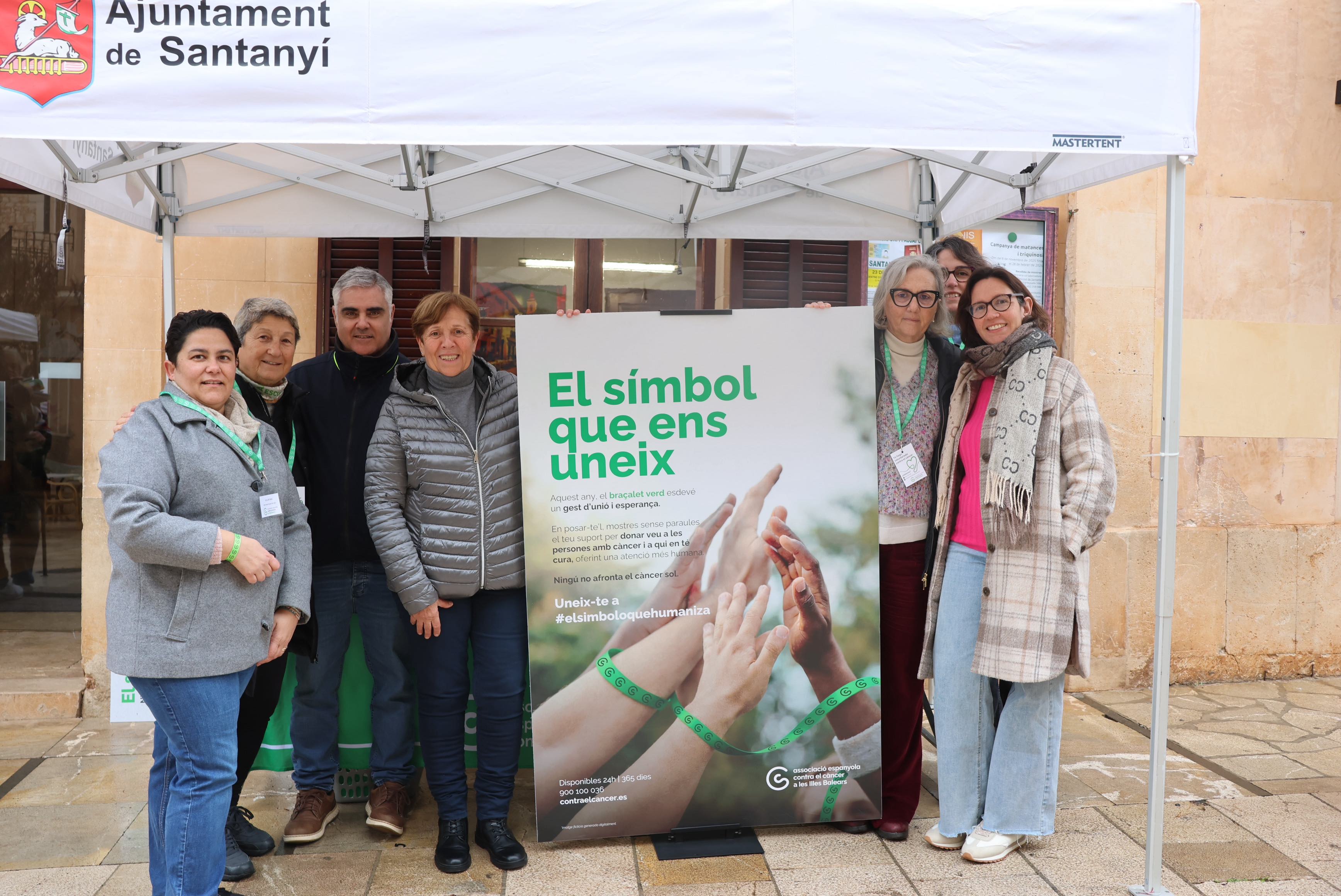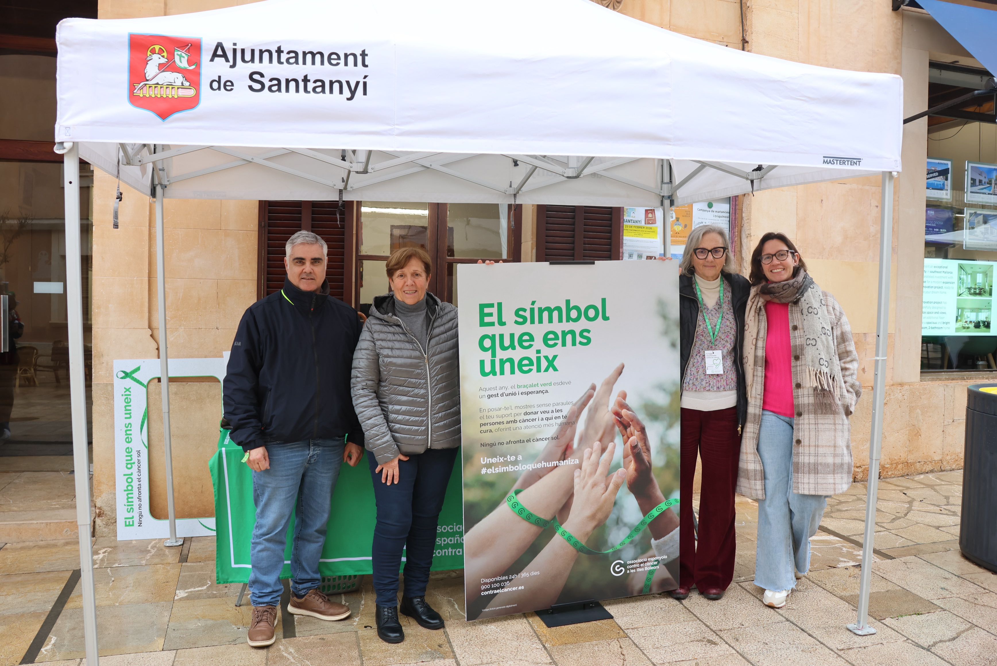 Amb motiu del Dia Mundial contra el Càncer, l’Associació Espanyola Contra el Càncer (AECC) ha instal·lat avui una taula informativa al mercat setmanal de Santanyí. L’Ajuntament de Santanyí, en la seva línia habitual de col·laboració estreta amb l’entitat, ha facilitat l’espai i el muntatge de la parada, situada estratègicament davant la casa consistorial.