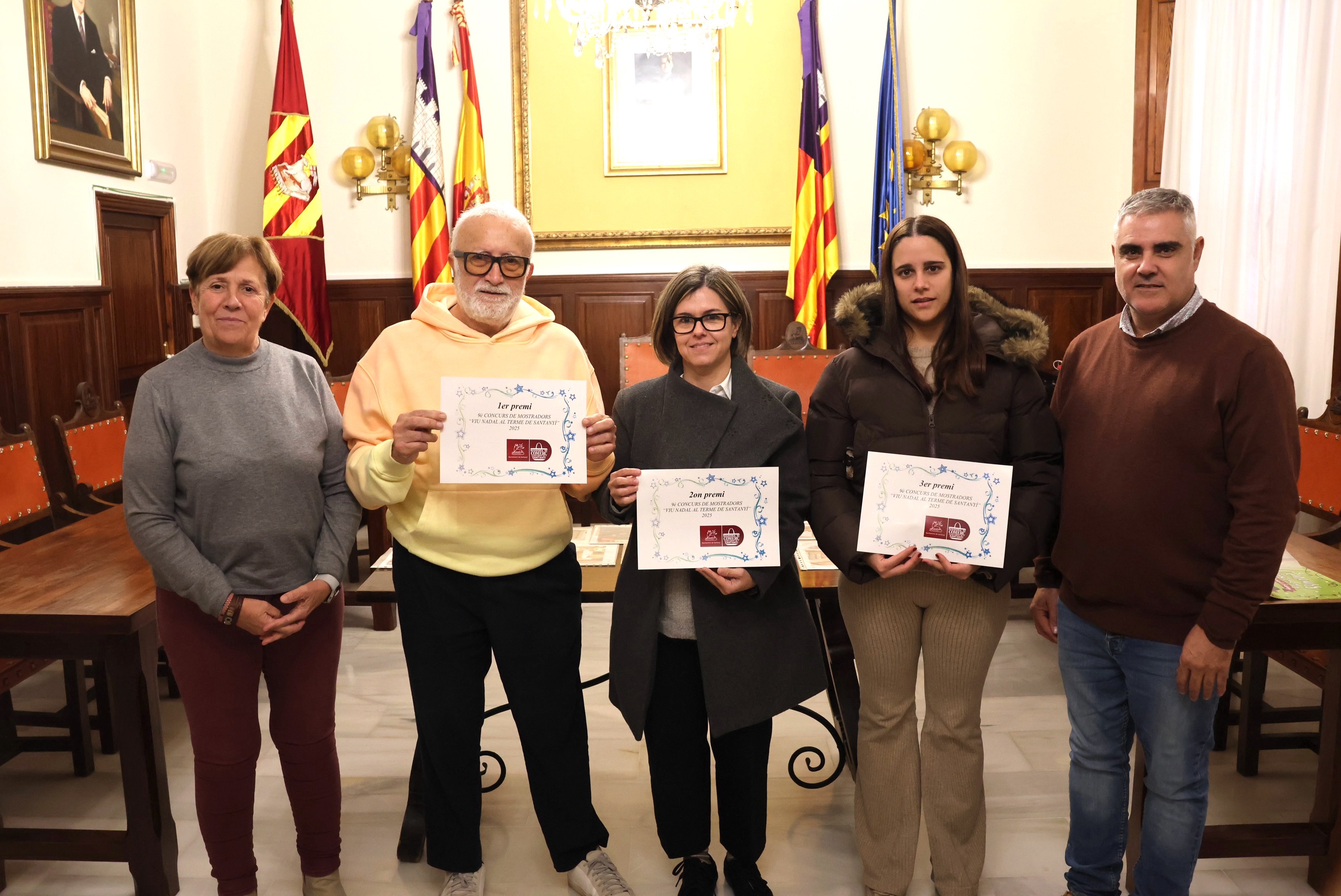 La sala d'actes de la casa consistorial ha acollit aquesta setmana l'acte de lliurament de premis del tradicional Concurs de Mostradors “Viu Nadal al Terme de Santanyí”. La batlessa de Santanyí, Maria Pons, i el regidor de Comerç, Fires i Mercats, Antoni Matas, han estat els encarregats de reconèixer la creativitat dels comerciants que han ajudat a ambientar el municipi durant aquestes festes.