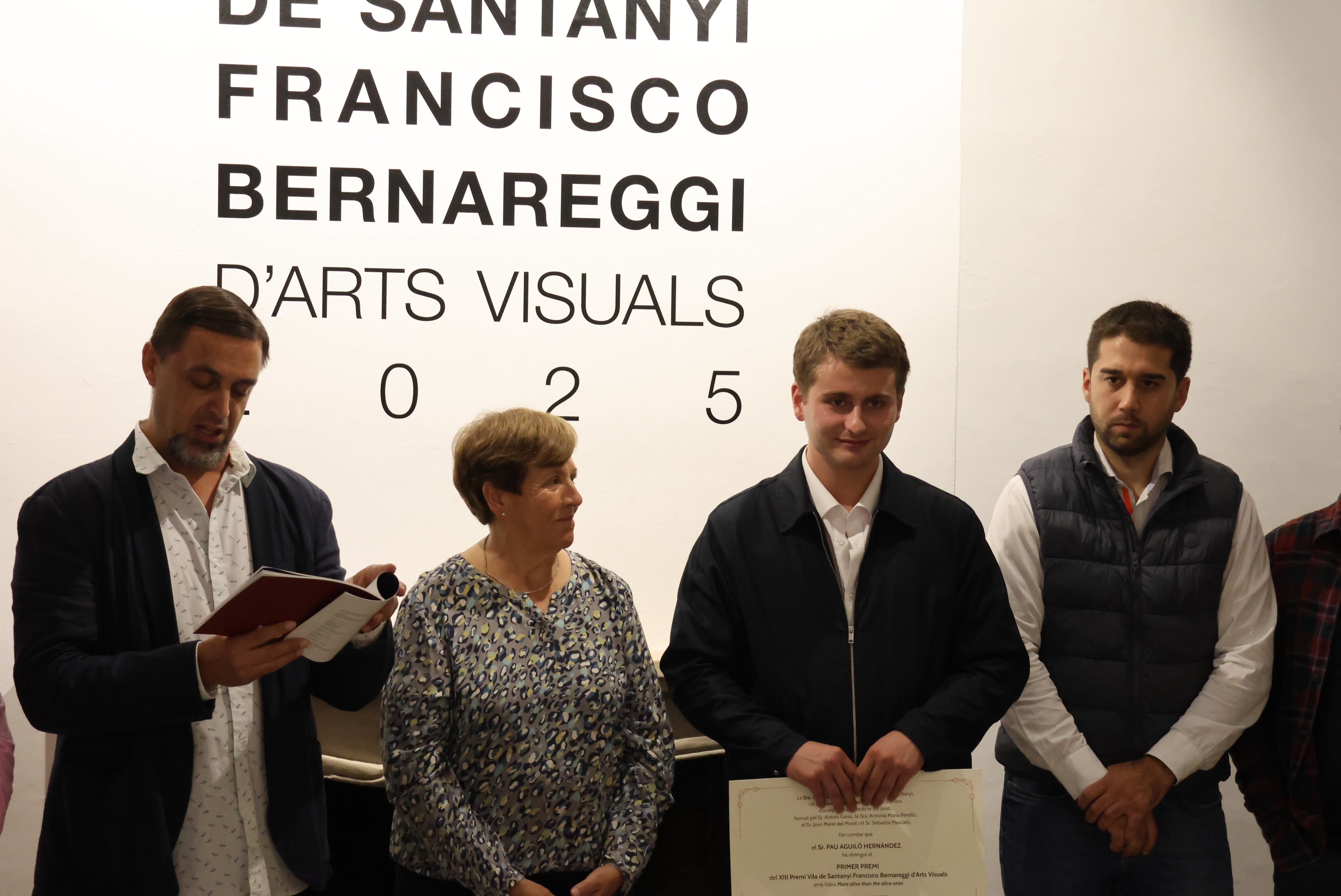 La Casa de Cultura Ses Cases Noves de Santanyí ha acollit aquest cap de setmana l’acte de lliurament del XIII Premi Vila de Santanyí Francisco Bernareggi d’Arts Visuals 2025. El certamen, que enguany ha batut un rècord de participació amb 75 dossiers rebuts , ha proclamat Pau Aguiló Hernández com a guanyador. L'artista s'endú el guardó principal, dotat amb 5.000 € , i la seva obra, More alive than the alive ones , passarà a formar part de la col·lecció municipal d’art contemporani.